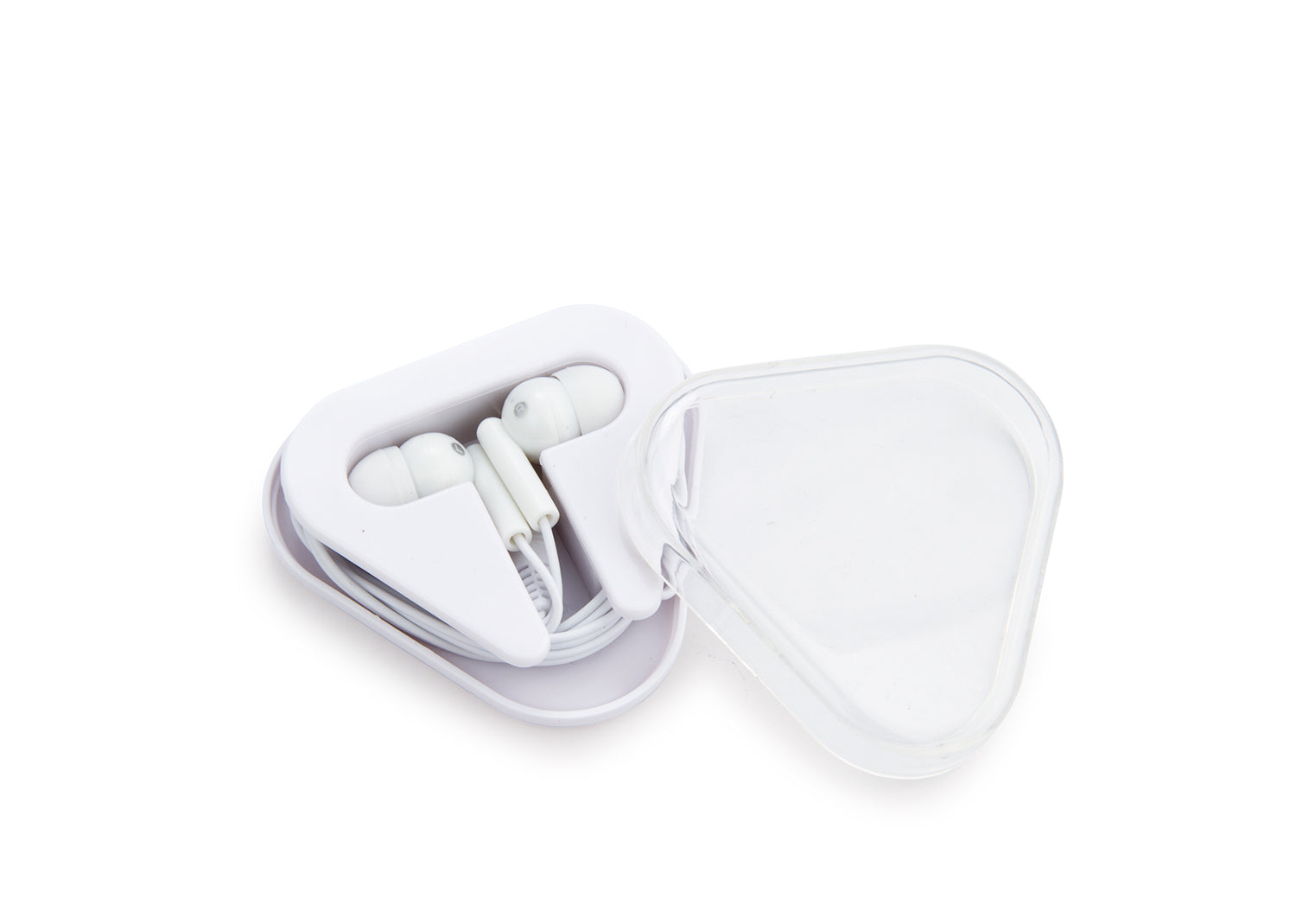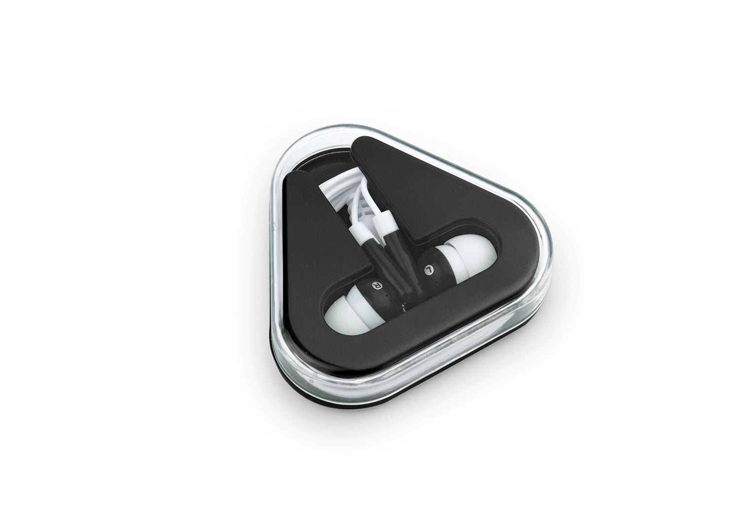 Audífonos intraaurales de conexión alámbrica con empaque plástico para fácil almacenamiento y protección. Cable de conexión estándar 3,5 mm. Longitud del cable 1 m.