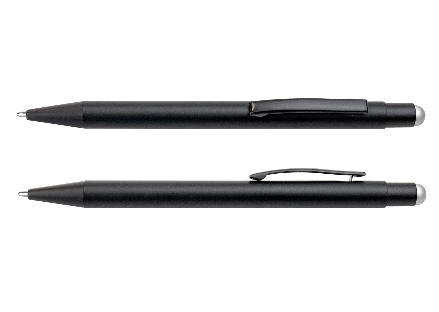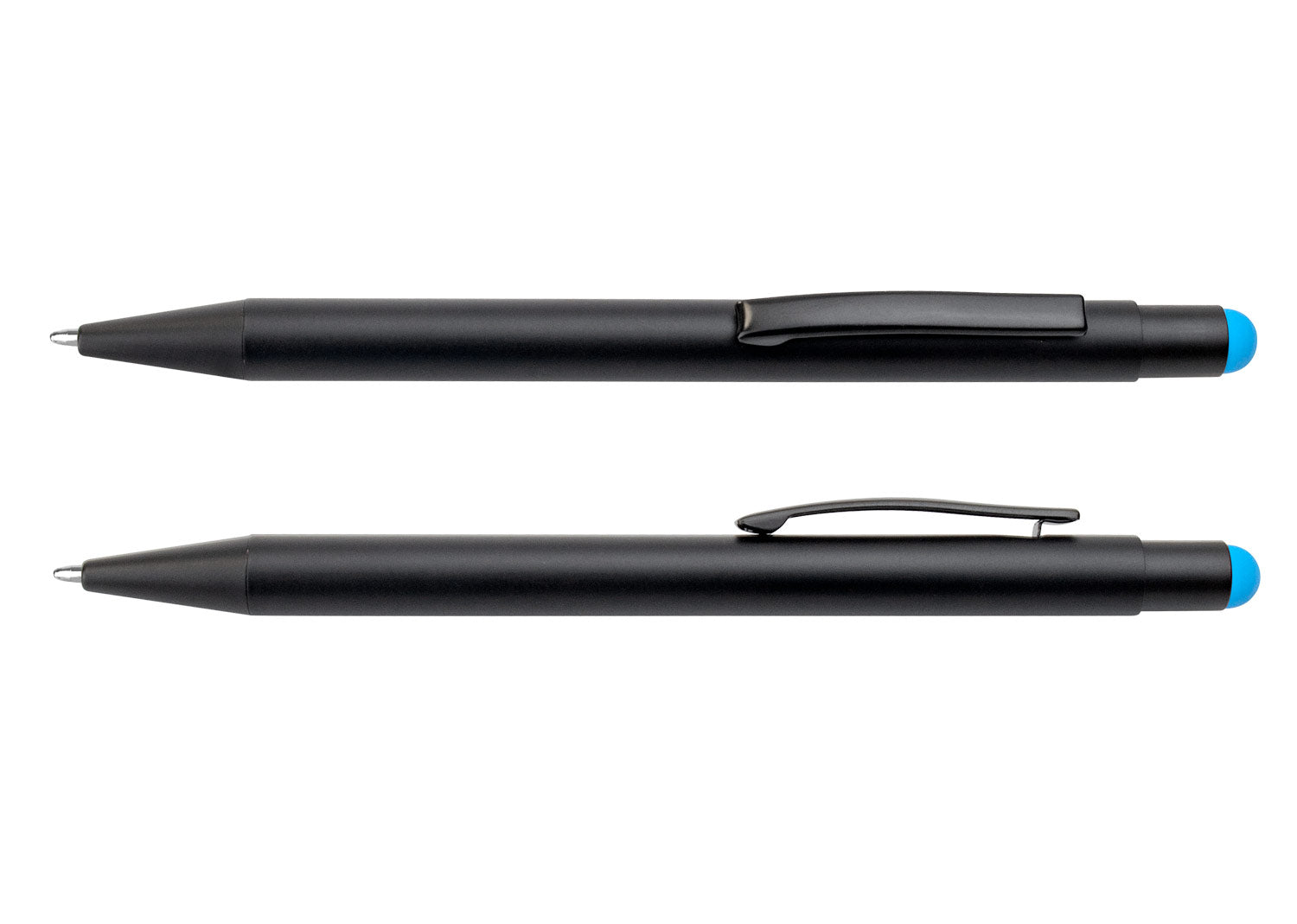 Bolígrafo Aluminio con sistema de apertura retráctil, touch en la parte superior, al realizar la marca la mostrara en el mismo color del touch