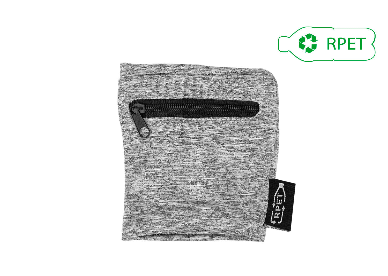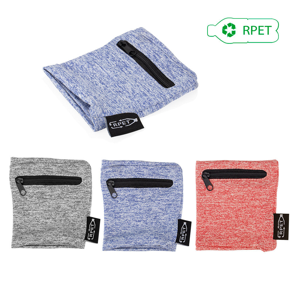 Brazalete fabricado en RPET con un pequeño y práctico bolsillo de cremallera.