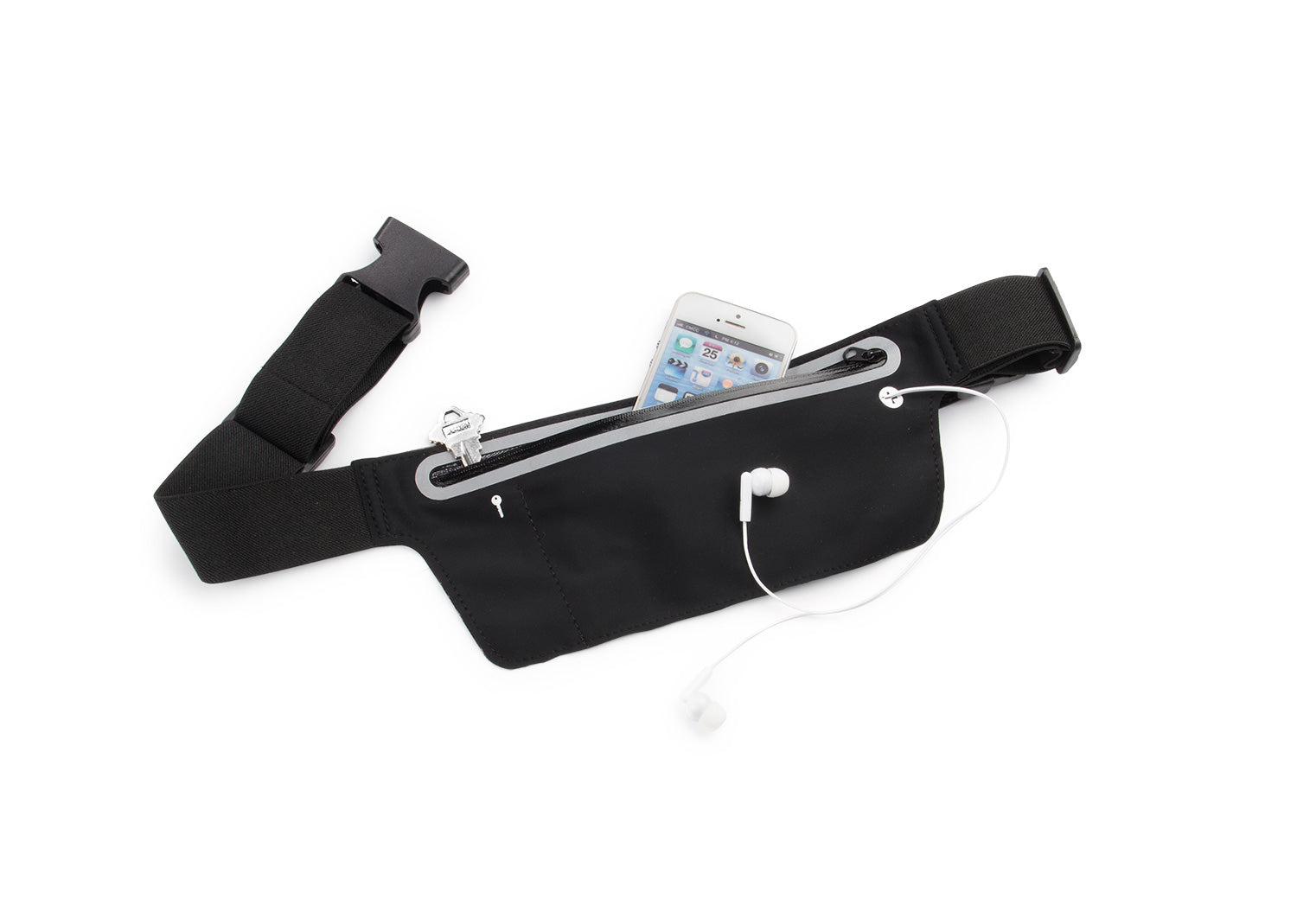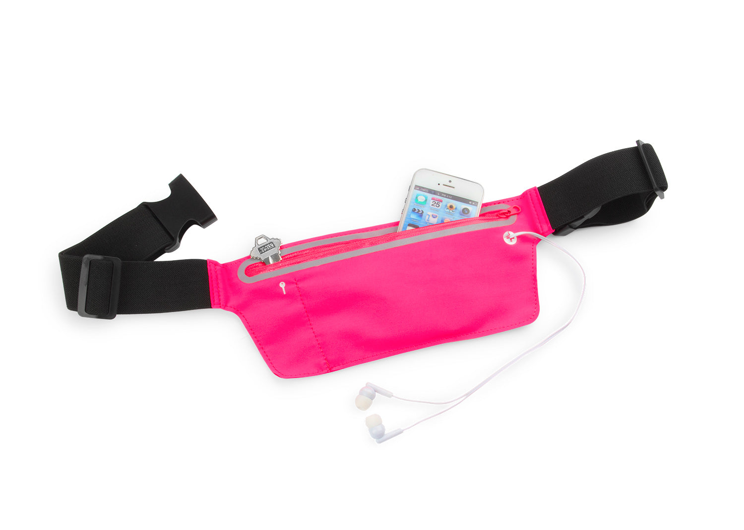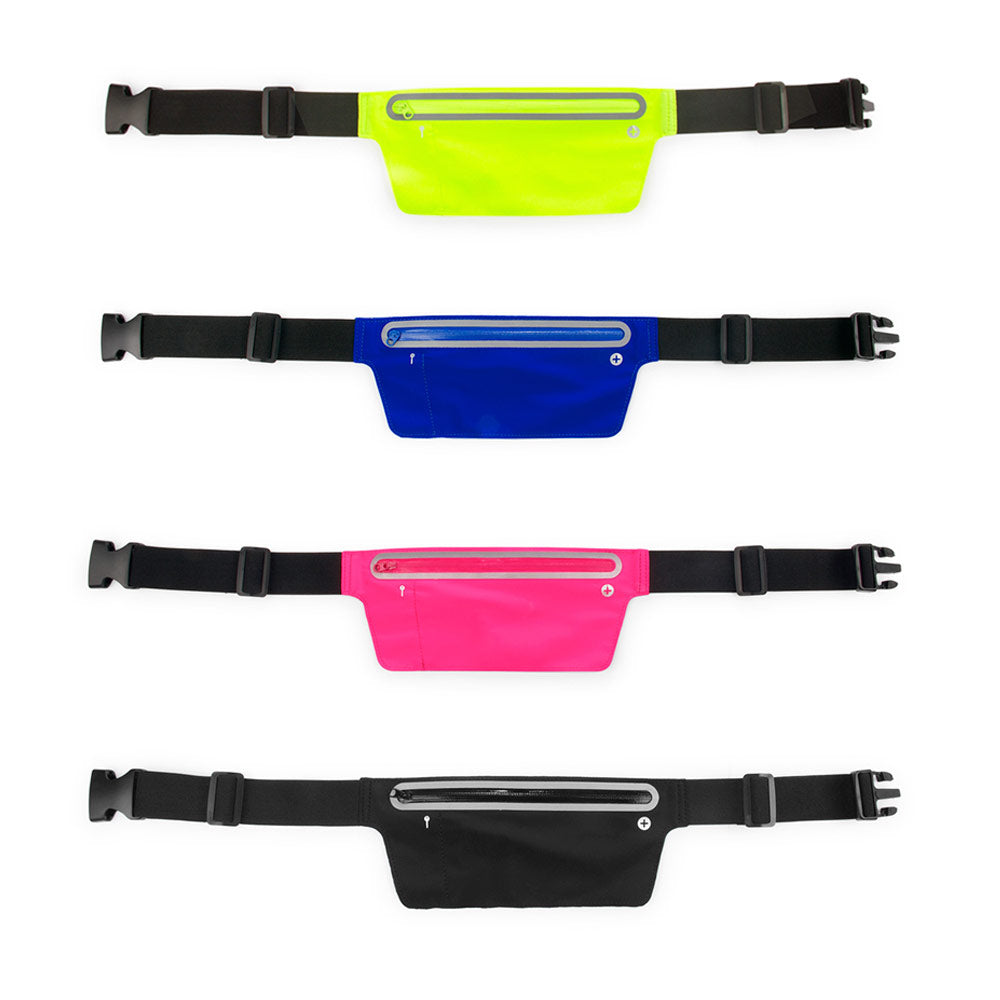 Canguro multiusos impermeable. Protege sus artículos mientras realiza cualquier deporte. Fácil de llevar, correa a la cintura ajustable y hebilla de liberación rápida. Orificio para audífonos y cinta reflectiva.