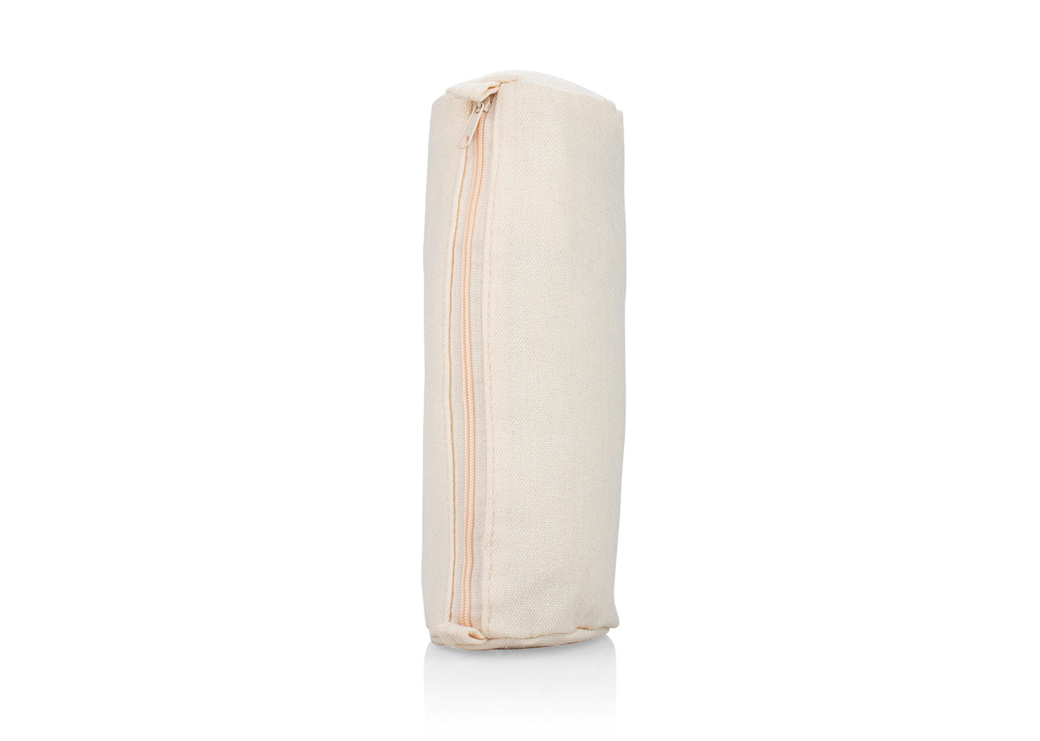 Estuche organizador con cremallera, elaborado en algodón de textura natural. Diseño compacto y resistente, ideal para guardar maquillaje, artículos de cuidado personal o accesorios pequeños.
