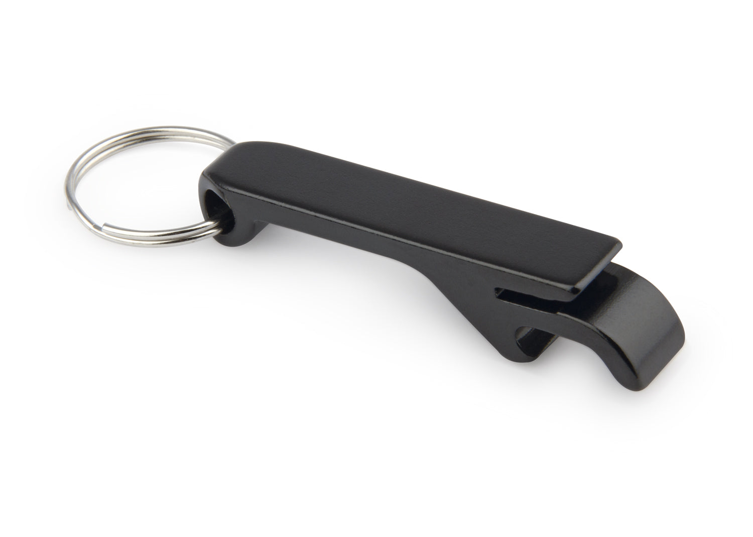 Llavero destapador en aluminio para abrir botellas y latas de gaseosa.