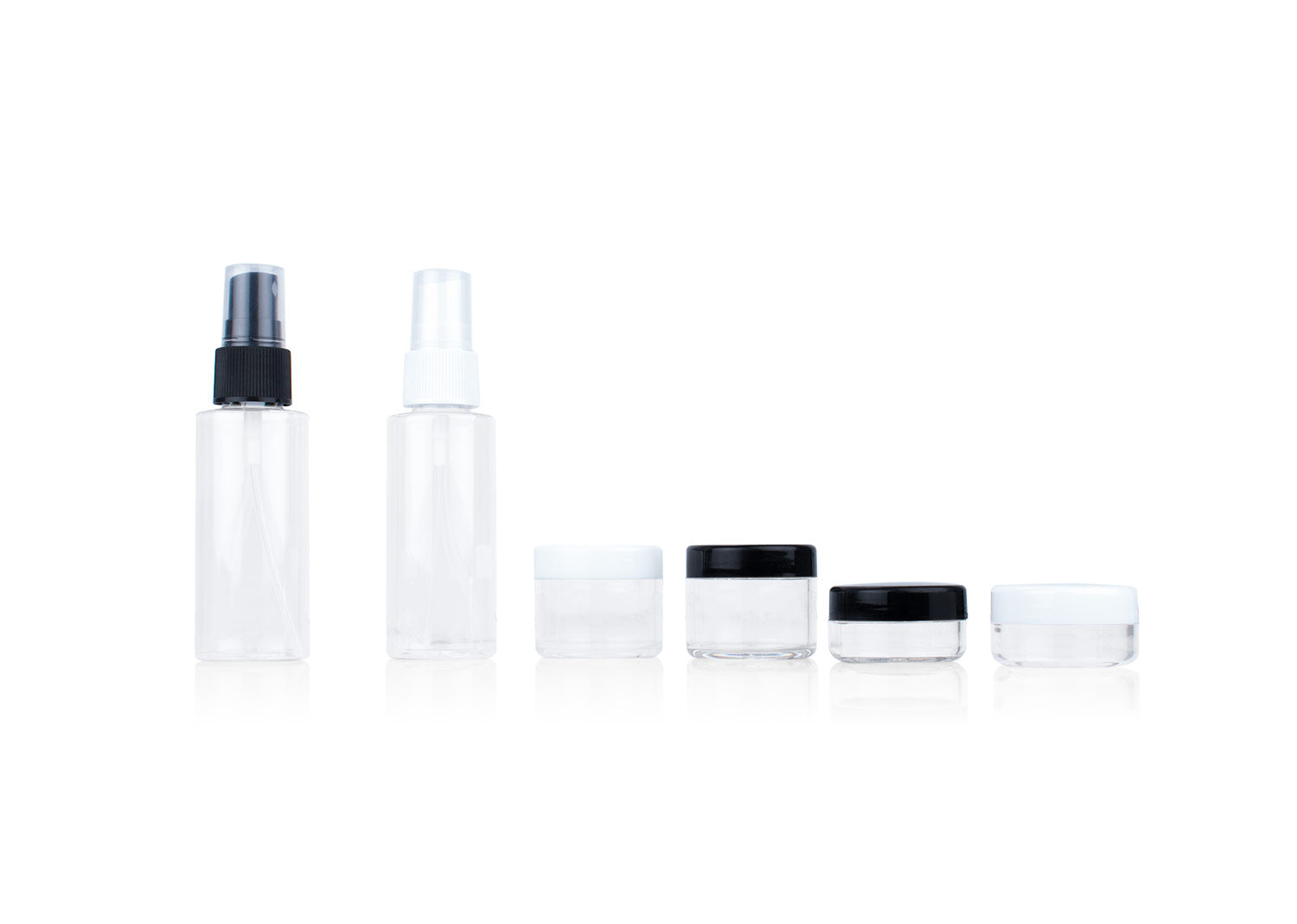 Set de viaje con estuche transparente en PVC con cremallera. Incluye frascos y envases reutilizables ideales para transportar líquidos, cremas o cosméticos de forma segura y práctica: Atomizadores: (11,5 X 2,5). Recipientes Medianos: (3,2 X 2,9). Recipientes Pequeños: (2 X 2,9). Perfecto para viajes o uso diario.