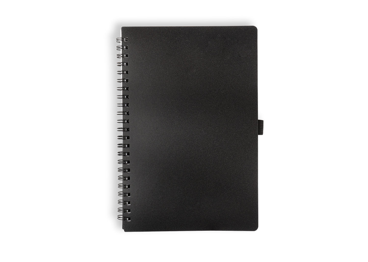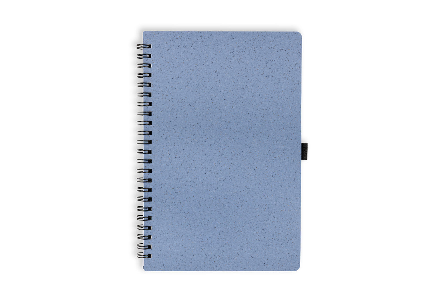 Libreta argollada 'doble O' con cubierta en paja de trigo. Contiene 70 hojas rayadas de papel reciclado. Tamaño aproximado de la hoja: A5.