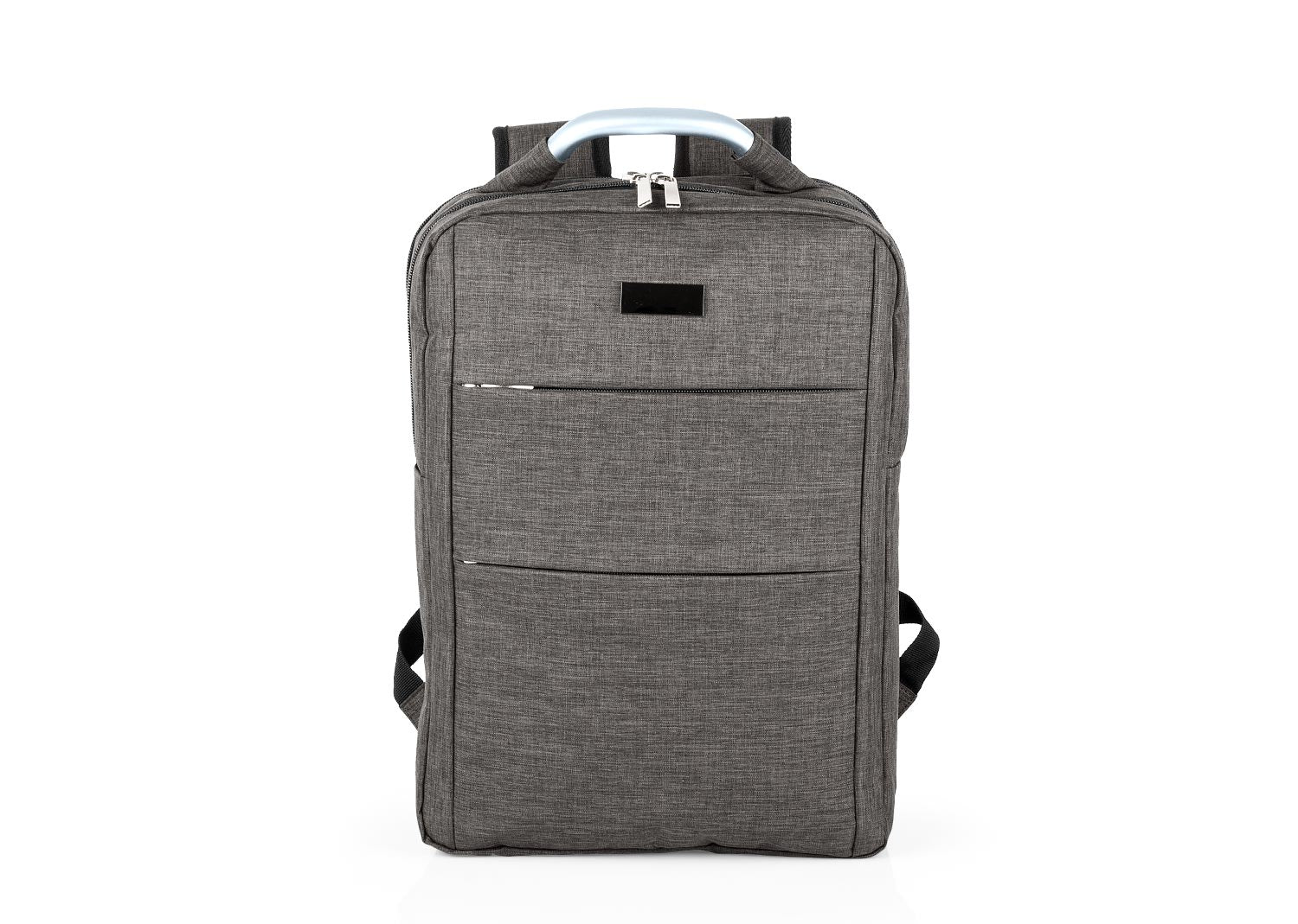 Morral con agarradera en Aluminio y cargaderas ajustables, un compartimento con velcro para portátil de hasta de 14” y el otro con bolsillo interior para bolígrafo y libreta. Doble Bolsillo frontal con cierre de cremallera. Incluye placa metálica para marcar láser. Volumen aproximado: 14 litros.
