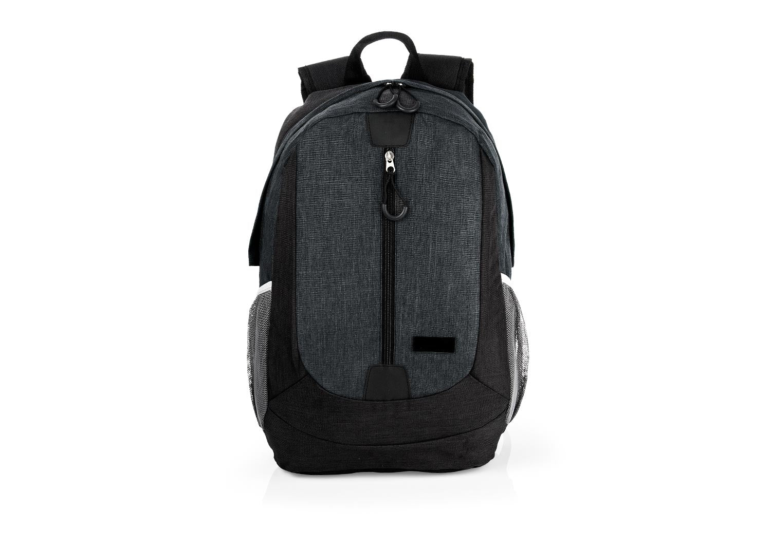 Morral con cargaderas ajustables y acolchadas, bolsillo principal cierre cremallera con compartimiento apropiado para portátil de hasta 19”. Bolsillo frontal con cremallera vertical. Bolsillos laterales en malla. Incluye placa metálica para marcar láser.