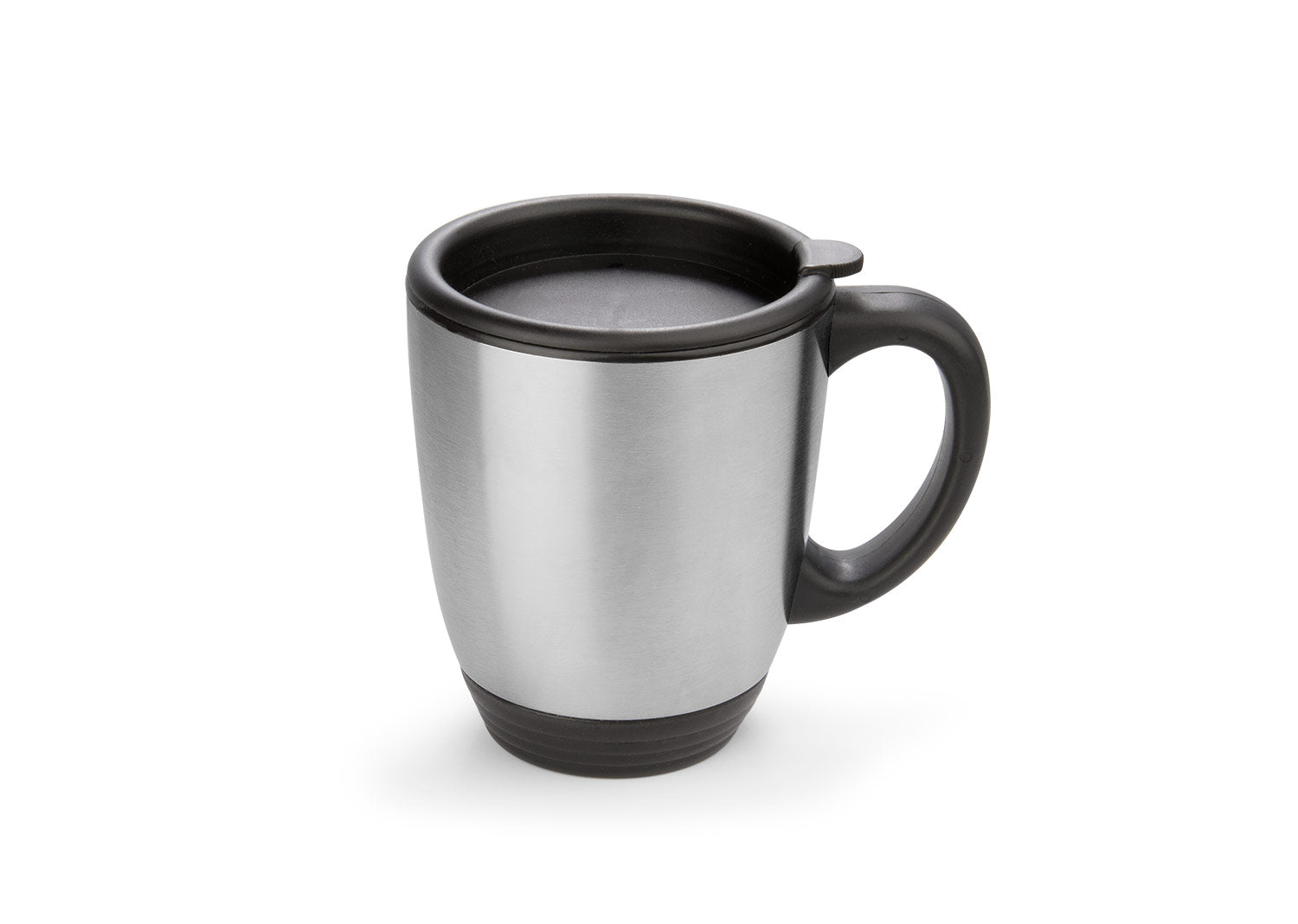 Mug de acero doble pared con recubrimiento interior en PP libre de BPA, que permite la conservación de la temperatura de acuerdo al ambiente. Con tapa hermética y boquilla abierta. Capacidad 480 ml / 16 Oz.