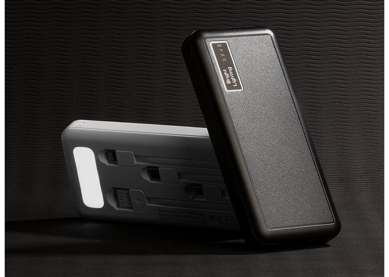 Muticargador con botón de encendido, salidas tipo C, Micro, Lightning y USB. Incluye función de linterna. 10.000 mAh, Entrada: 5V/2.1A Salida: 5V/2.1A