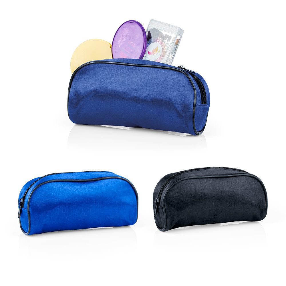 Estuche satinado con cremallera ideal para organizar el maquillaje y/o los productos de aseo personal.