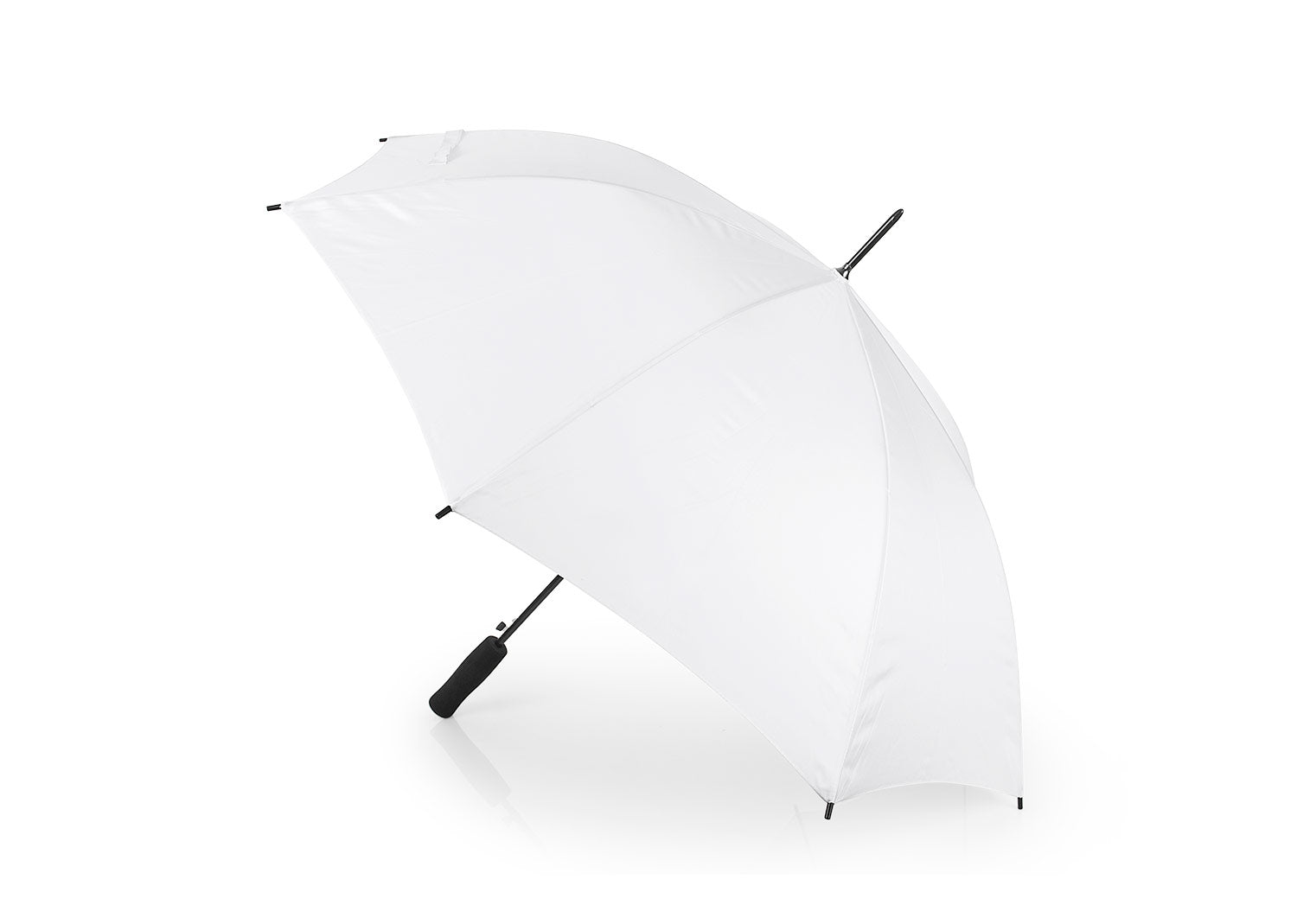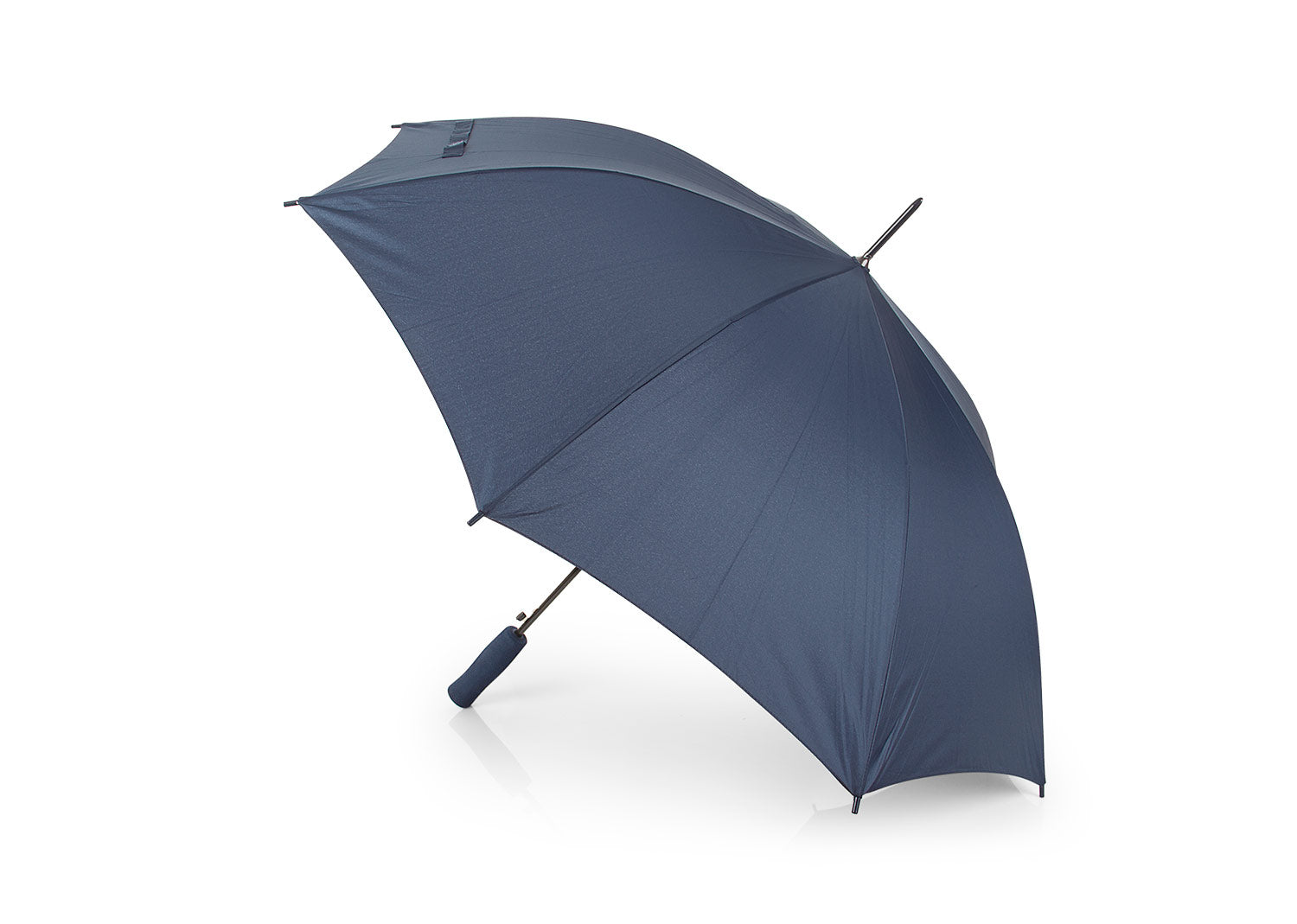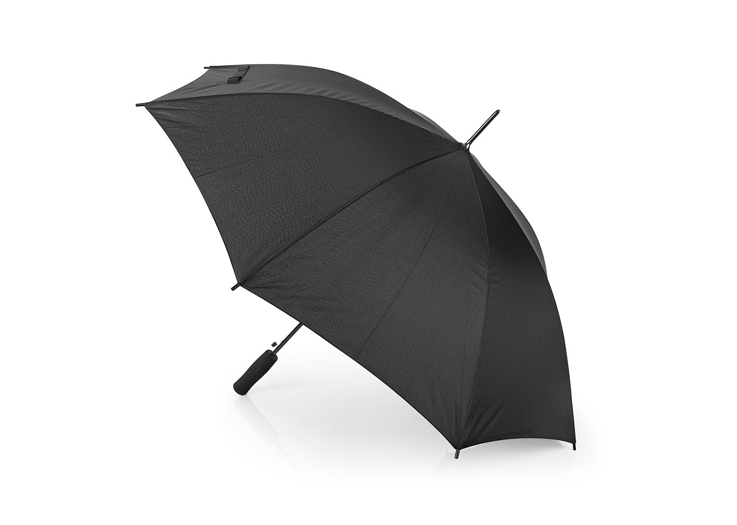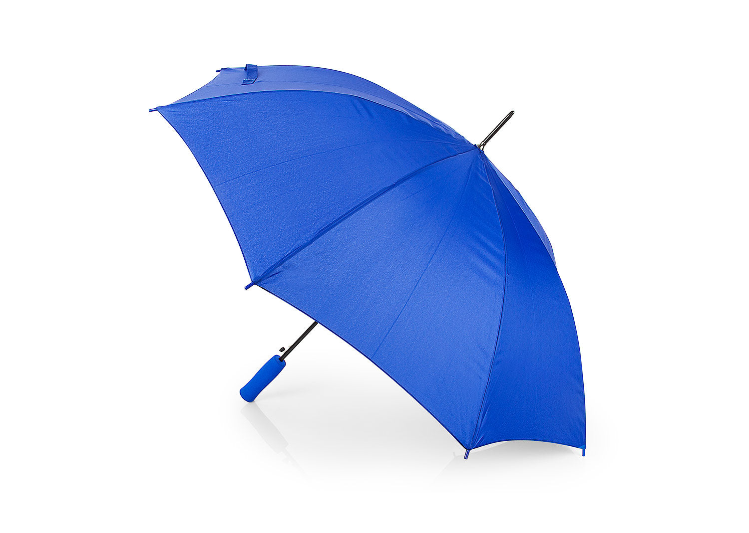 Paraguas con apertura automática y cierre manual, varillas y eje metálico. Mango en goma EVA del mismo color del Paraguas. Tela pongee 190t, puntas de plástico.