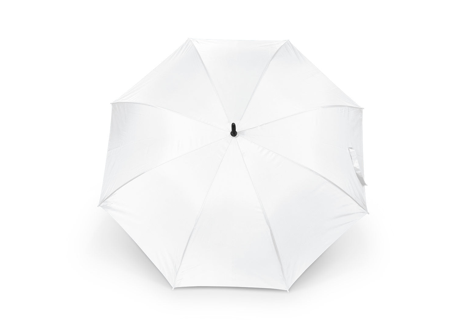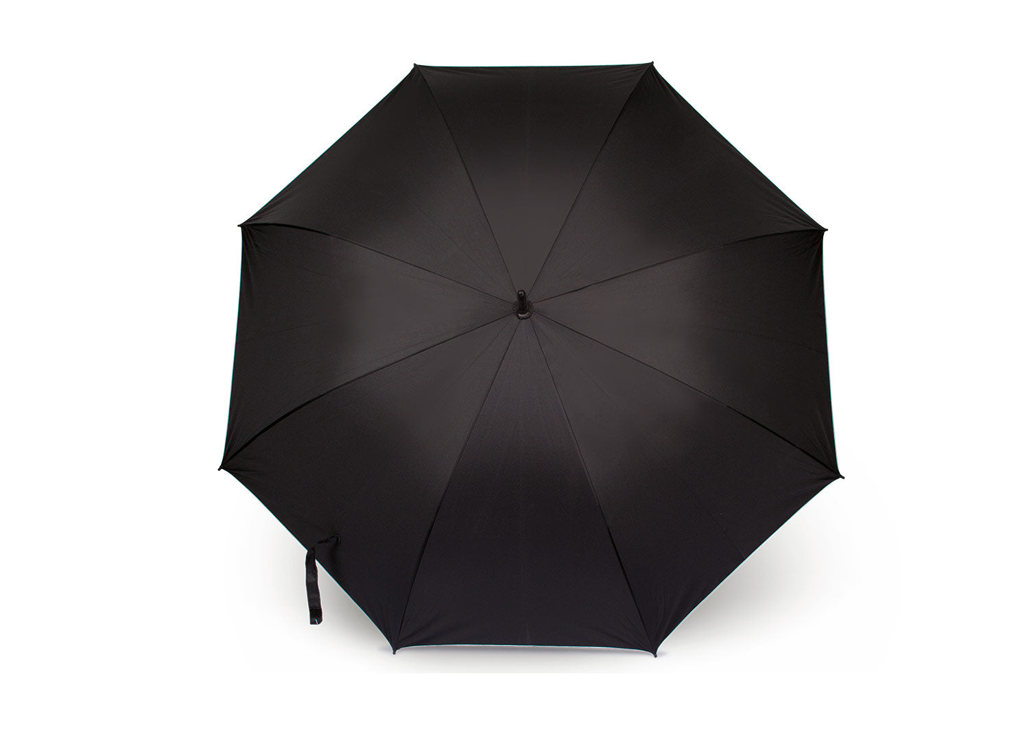 Paraguas tipo Golf con eje y varillas metálicas. Mango recto color negro, apertura automática y cierre manual. Costillas con acabados en color negro.