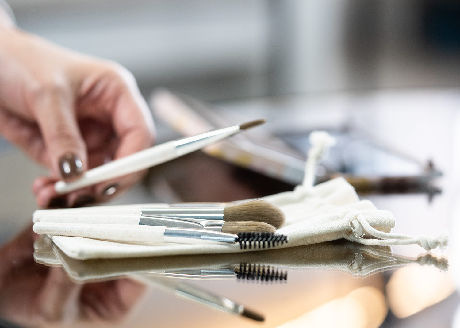 Kit de brochas para maquillaje. Con cerdas suaves y mangos de paja de trigo resistentes. Contiene: Brocha para sombra de ojos (11,7 X 0,5), brocha para difuminar sombras (12,1 X 0,5), brocha para rubor o contorno (12 X 0,8), cepillo para cejas/pestañas (12,6 X 0,5), brocha pequeña angular (11,5 X 0,8) y brocha de precisión o para corrector (11,5 X 0,5).