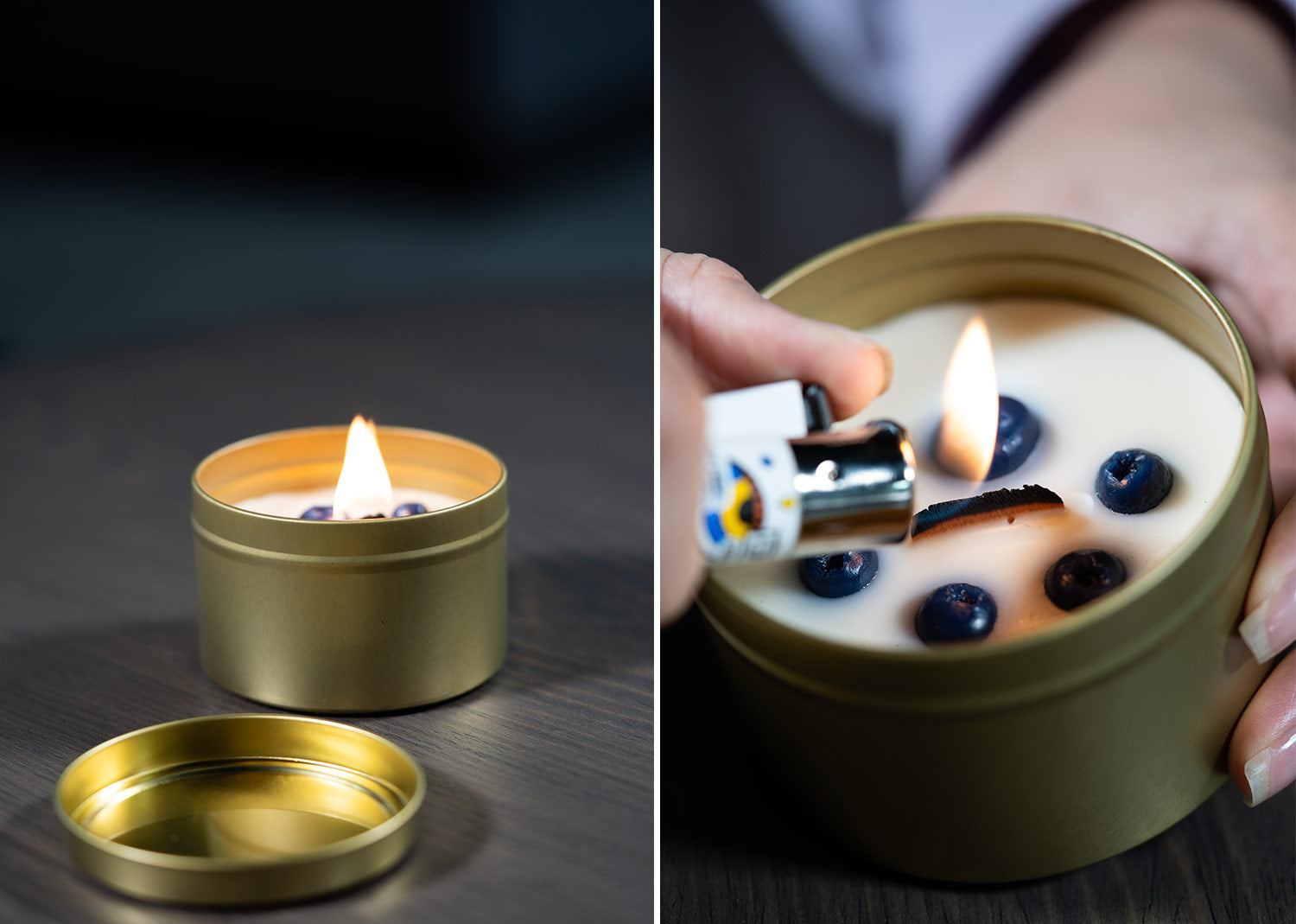 Vela aromatizada con olor a vainilla en envase metálico con tapa, 140 gramos.